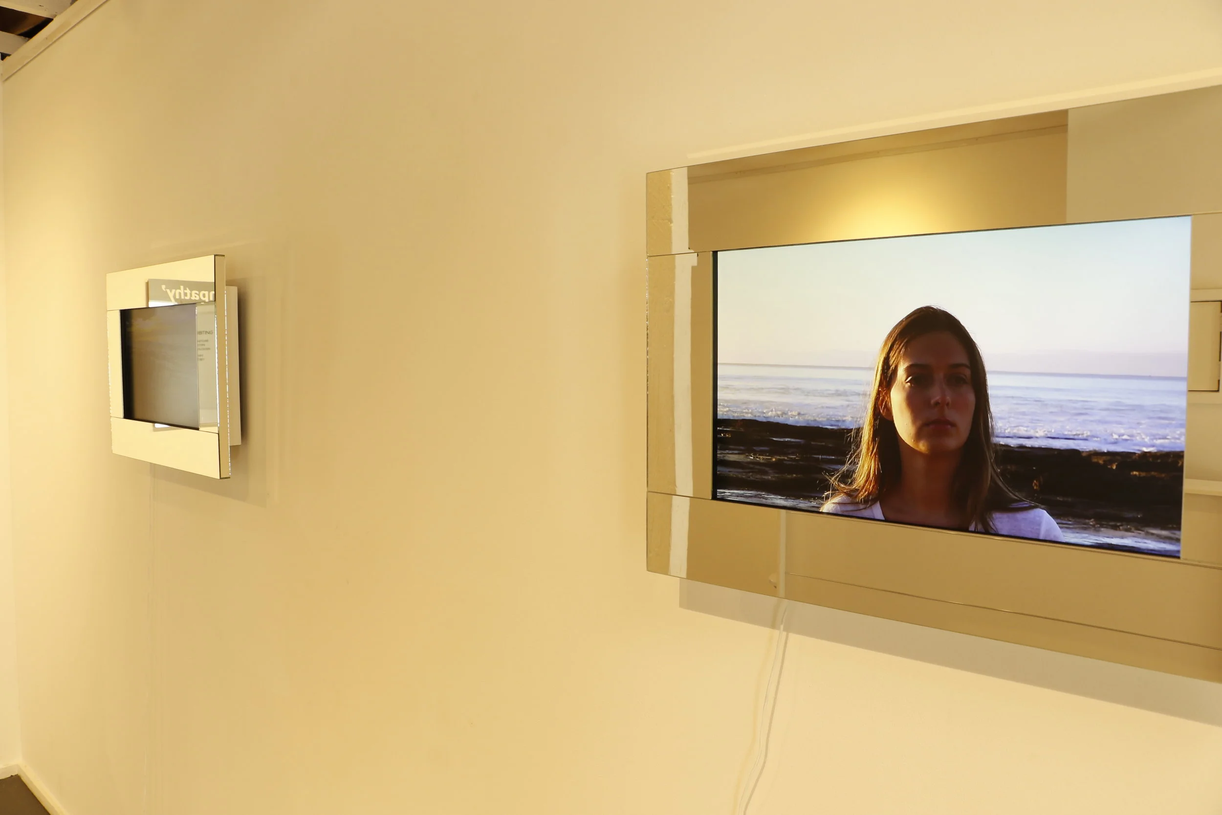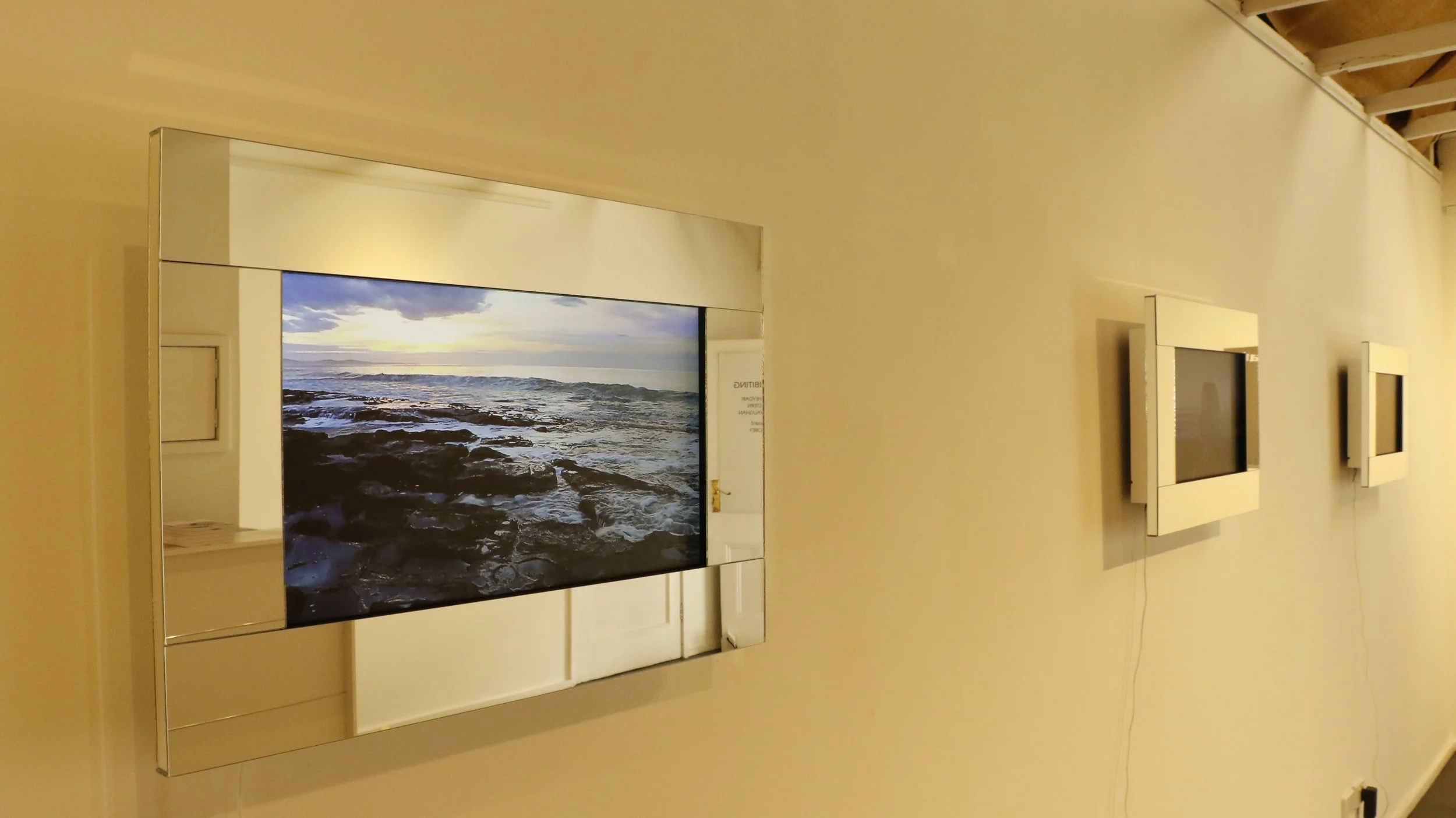 This exhibition explored the idea of empathy and sympathy for the viewer and subject. The three televisions are framed in mirrors allowing the viewer to be a part of the experience when encountering the work. The sound of the words ‘Empathy’ and ‘Sympathy’ being repeated in the background and the imagery at either end of the gallery space created an enveloping area within which viewers could relax and experience the morning sunrise and tide rolling in shown on the videos while also igniting conversation about the concept of ‘Empathy’ and ‘Sympathy’.